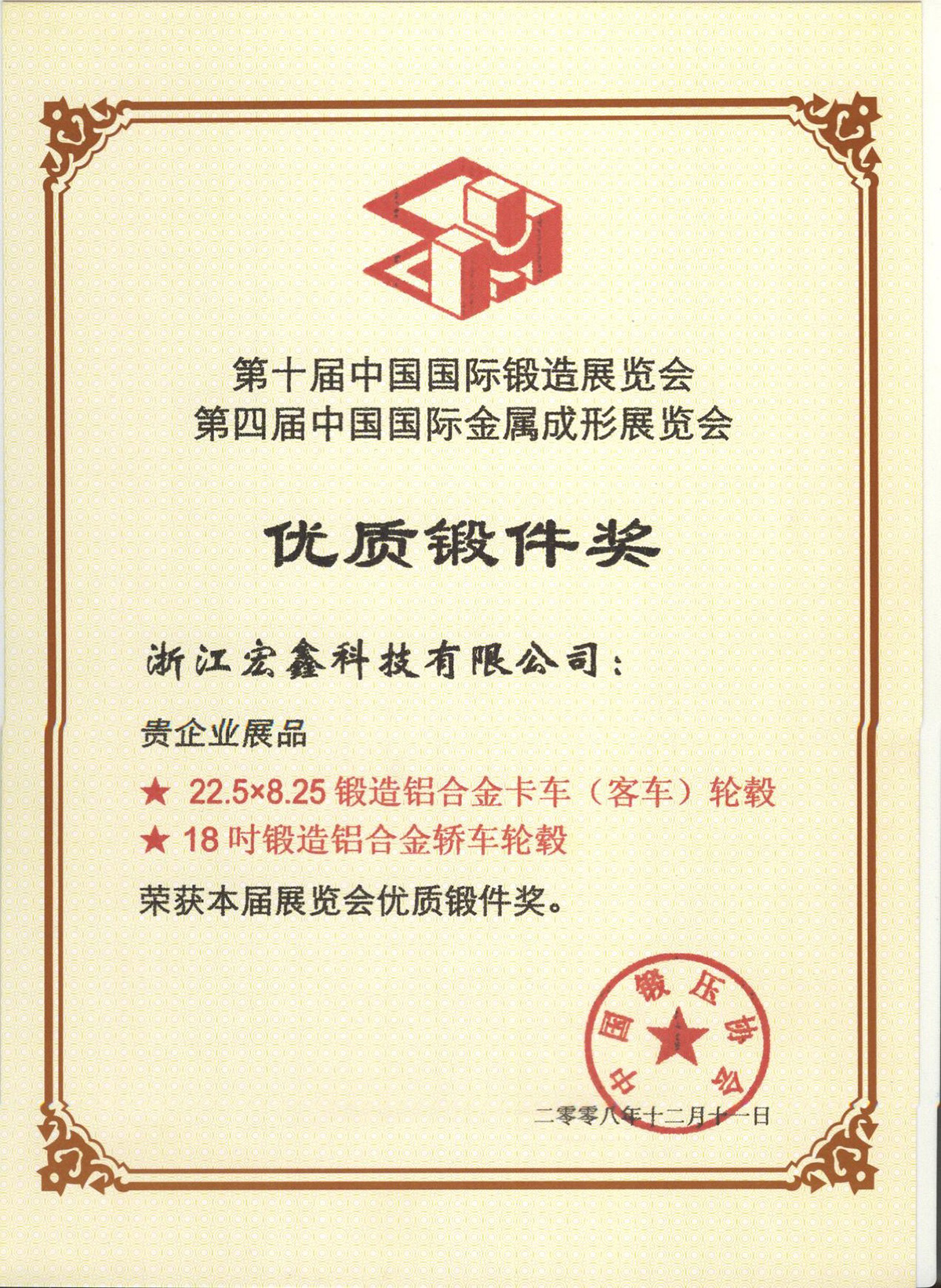 第十屆中國國際鍛造展覽會(huì)第四屆中國國際金屬成形展覽會(huì)優(yōu)質(zhì)鍛件獎(jiǎng)
