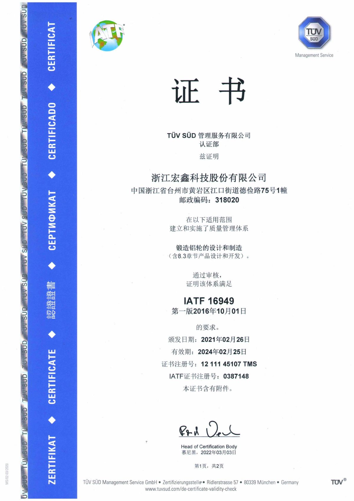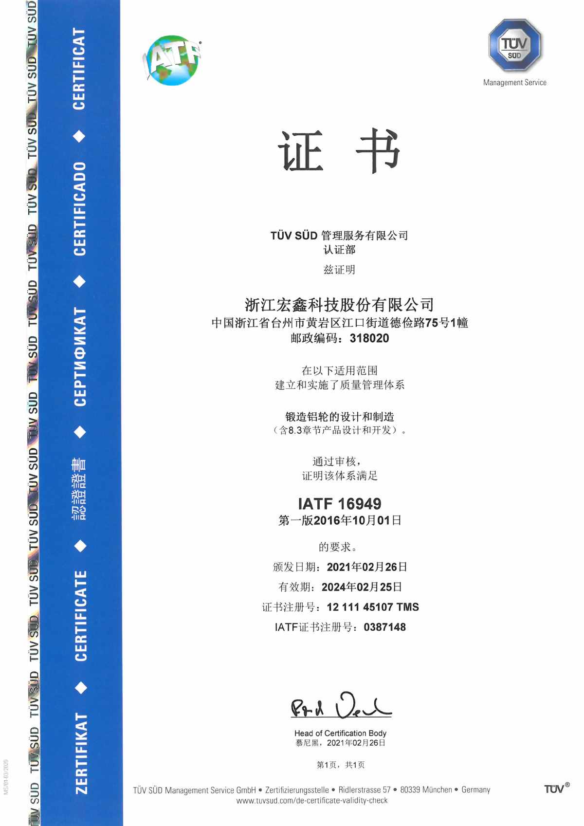 2016年,宏鑫成為國內(nèi)最大的乘用車后市場鍛造鋁車輪供應(yīng)商,并獲得“中國汽車維修行業(yè)協(xié)會(huì)”頒發(fā)的“同質(zhì)配件試點(diǎn)企業(yè)”榮譽(yù)證書。