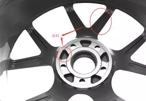 背面判斷:鑄造輪轂一定會(huì)做背面逃料,一是為了減重,二是為了方便刻符號(hào),鍛造輪轂有可能沒有逃料(也有特殊,但逃料樣式會(huì)有不同)如圖